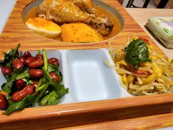 今晚在這間裝修簡約,光線充足又新淨的小店晚膳。印尼風味,點了以下食品:一人餐 $82「唐芹拌豆根」 - 涼菜,豆根切幼絲,加上紅椒絲與唐芹,用醬汁麻油撈起,唐芹味道香濃,天氣熱的時候別吃好醒胃。可選兩款小吃,但我只點了一款,來了兩小份。「招牌辣Tuti雞配厚切豆腐飯」辣度剛好,有兩件雞下髀加一片厚的煎豆腐,豆腐伴汁吃剛好,雞肉柔軟,入口嫩滑,還有半隻蛋,辣汁帶有微微的香,伴肉伴飯吃都彼惹味。「凍粒粒蘋果蜂蜜茶」包飲品淡淡的蜂蜜,少甜粒粒蘋果肉,冰涼解膩,甜多少許更合我口味。「木瓜椰奶雞髀肉飯」$72「粟米飯+$5」真的比較少食吃印尼菜,有些食材不知是什麼添!好彩侍應姐姐幫手解答。疑似芋頭條的, 原來是印尼特產-用黃豆製成的豆餅,粉粉有粒粒,另像節瓜的東西,是青木瓜,比較有咬口,青木瓜不是沙律嗎?哈哈...!還有粟米飯,不像是粟米來的!!主角:無骨又嫩滑的雞肉,椰汁味夠濃香,有點像帶甜味的泰式青咖哩,加埋吸汁豆卜,雖獻汁不像粵菜濃稠,挺好味,不會追水飲。「蒜香爆炒四季豆」$36簡單便煮出香味,四季豆用乾蔥紅椒起鑊炒香,爽甜脆香,三十幾元便吃到炒青菜,實惠。整體感覺良好,服務不錯,價錢經濟,尤其套餐,如想吃多一點青菜,我們便一份餐加一份散點。看到舊有的店舖因疫情或種種原因關門,新開的小店要支持一下,香港才有新生氣!查看更多