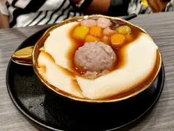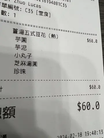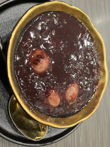 今日差不多4点先食完”Lunch “, 所以到7点多本应是晚饭的时间,我却真的食不到正餐。于是和友人决定食「甜品」当正餐!嘻嘻😜我们点了一个豆腐花和紫米红豆🫘芝麻汤圆(有6粒),豆腐花豆香不算好重,但质感ok, 偏淡,不过,因为豆腐花下面是有红豆🫘,又有「珍珠」,又有芋圆等等甜味十足的食物垫底,只要一并跟豆腐花一起食,其实甜度适中。我觉得ok! 都好食!另外个紫米红豆汤,紫米够「林」,不会好硬,但仍具粒粒口感,红豆软硬适中,都充满红豆应有的香味,整体甜度不会过甜,而且有6粒芝麻汤圆搭配,汤圆外表白色部分好软绵绵的,一咬便见到内里的芝麻蓉慢慢的流水来,好像「心太软」咁,看见都觉得吸引,想大口大口食晒成粒,很滋味!😋堂食份量我又觉得比较细碗,其他都ok! 😆