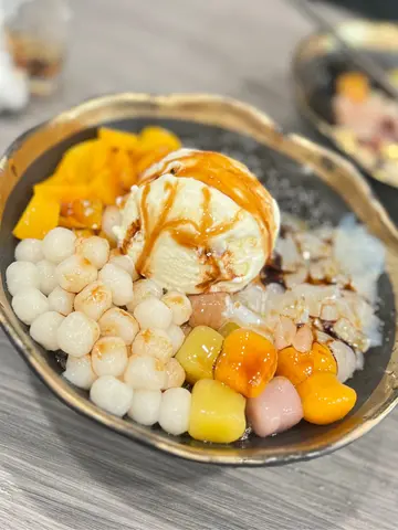 这周末下午,娘娘说不想吃饭,天气太热了,于是要甜品当午饭 ...“双芋热豆花”,中间那颗芋泥,是不是像一粒濑尿牛丸呢?😅 用个白底的豆腐花衬托七彩的芋圆,卖相专业,嫩滑混在烟韧𥚃,口感过瘾。“五色黑糖冰”,有地瓜泥、黑糖冻、绿豆、薏仁、红豆,全部没什么多余的调料,全部天然甜味,豆煮得软糯,跟前面那个豆花一样, 卖相专业,口感过瘾。虽然是甜品,但有芋圆,还算饱肚,这甜品午餐没选错,料事如神的娘娘,劲呀!