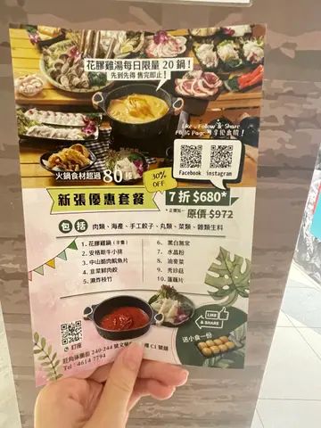 呢间新开既火锅店装修超级靓,打卡一流,充满文青风气息,唔讲以为系Café。✨新张优惠套餐(7折后$680)包括肉类、海产、手工饺子、丸类、菜类、杂类生料✨花胶鸡锅(半只)鸡肉超嫩滑好食,可以先饮汤,然后再打边炉,每日限量20锅,先到先得!✨安格斯牛小排牛小排入口即溶,份量好多。✨中山脆肉鲩鱼片脆肉鲩好鲜甜,口感脆,非常好食。✨韭菜鲜肉饺韭菜和鲜肉比例完美,鲜肉新鲜。✨湿炸枝竹枝竹吸收完汤既精华之后很美味。✨黑白无常分别有白色和黑色的墨鱼丸,个人喜欢黑色的,比较浓味。✨水晶粉口感Q弹,吸收完汤的味道好正。✨油麦菜油麦菜新鲜,份量不少。✨秀珍菇发现打边炉食菇类都正,秀珍菇又软又入味。✨莲藕片爽脆可口,切到细细块方便进食。…Read More