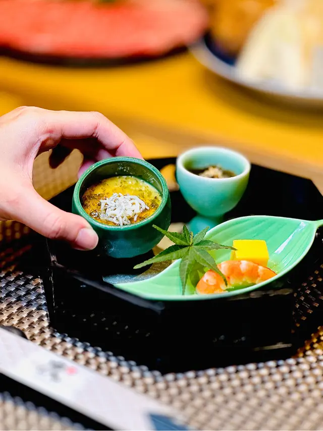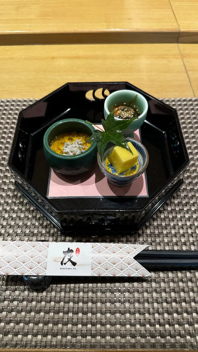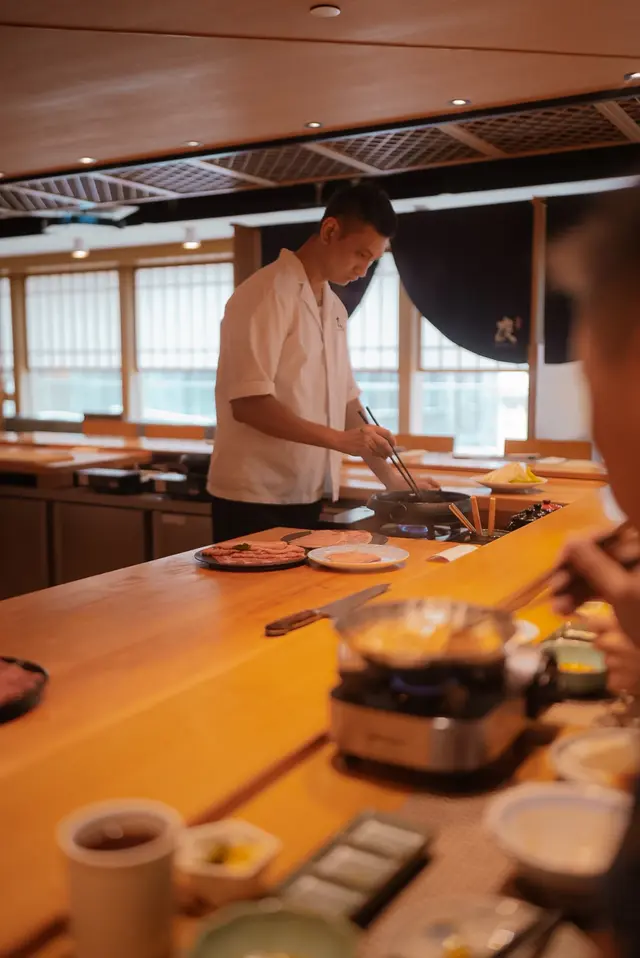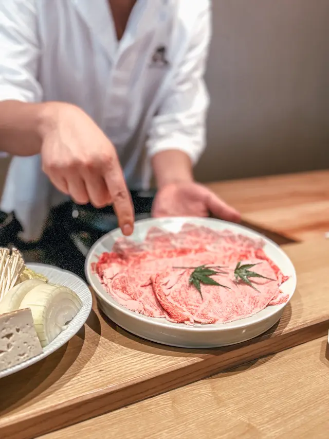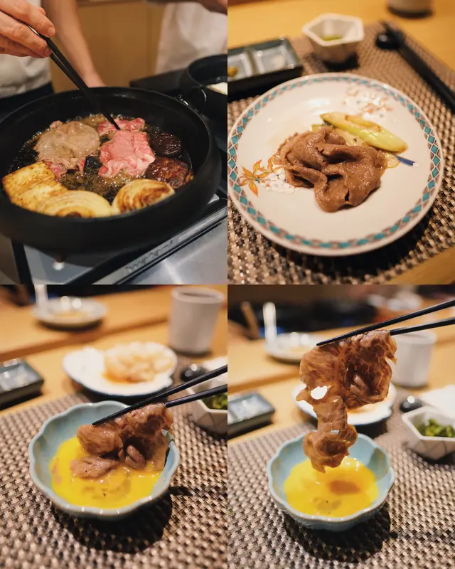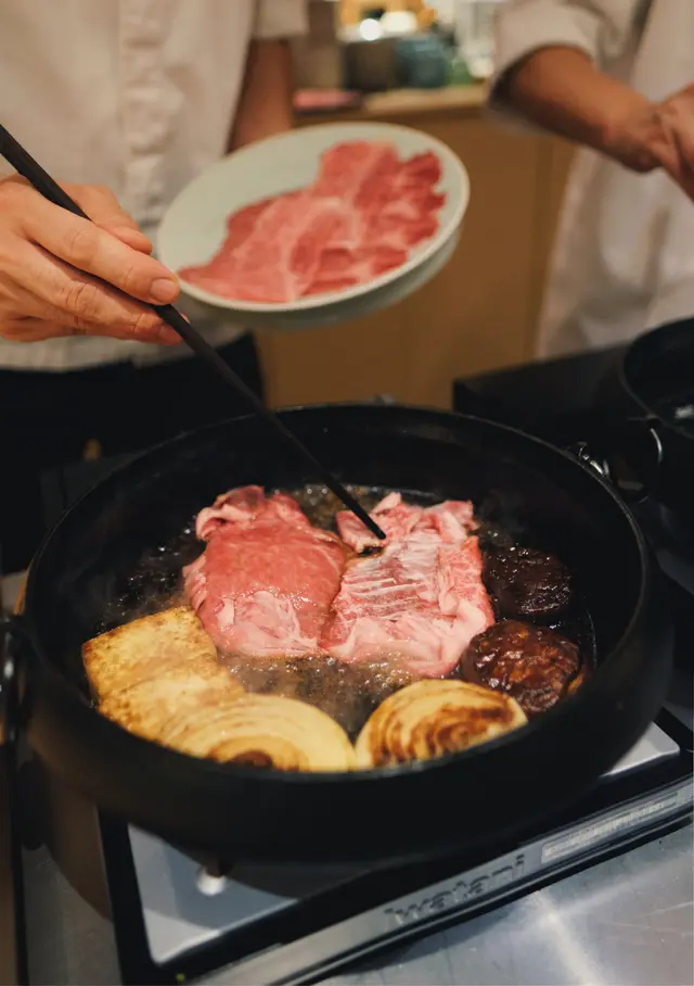 位於銅鑼灣嘅「壽喜燒友」 係一間廚師發辦嘅壽喜燒店,今次坐喺吧枱用餐可以近距離見到廚師烹製和牛同其他食材過程。今次黎試下佢地嘅 sukiyaki dinner set (HKD680/pp),首先上菜嘅係用熊仔空心餅裝住嘅牛肉他他,然後係3款各有心思嘅前菜,食完即刻好開胃咁等待品嘗主菜和牛壽喜燒😋今次嘅壽喜燒有3款A4和牛,包括有1片肉眼,1片西冷以及2片肩肉,由廚師以壽喜燒汁烹調,再配合蛋黃汁去進食,無論味道定口感都係一流!3款和牛味道各有特色,可以品嘗到和牛的不同口感。野菜方面則有5款,每吃過一款和牛後便會附上,有助解油膩用,另外米飯可無限次追加。吃過雞蛋蓋飯後,廚師更即場以刨冰機製作紅豆抹茶刨冰,為今餐壽喜燒劃上完美句號。推薦大家去試看看!…查看更多