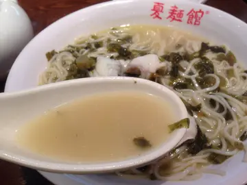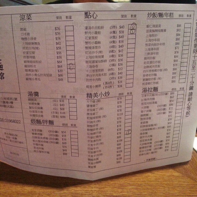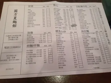 周日如常的节目,看电影及外食,在 Grand Cinema 看完 Gunman,下午二时多在覍食,不明白为何商场内无一间性价比高的店,只有一小时时间,就沿路选了夏面馆。上次光顾已在数年前刚开张时,当时亦是往上海旅游不久,比下去,香港的店,尤其是那黄鱼面,根本无法与上海的比,因此一直未再有光顾,阔别多年,希望有所进步。位于高档商场内,夏面馆店内装潢雅致,以红色为主色。选菜以点心纸,其实上菜亦快,员工服务态度无不佳。二人午餐,两款小吃及两碗面足够有余。灌汤牛肉馅饼餐牌上图片显示的外型是扁的,是九龙城清真牛肉面的招牌牛肉饼的模样,方才是馅饼!奉上的是如菜肉包的形状,包顶折起那款,是个牛肉包,绝对不是馅饼!询问女服务员,只回答是现在换了样子了,那为何不换食物照片?有少许想退货的冲动!本来心在挂念清真的,纵使这儿做不到人家十成,有五、成功力也好,但可惜实物不符,严格说是货不对办,违反商品条例!除外型不乎外,卖相亦不讨好,炸至又干又硬似的!撕开一半,见包子外皮的很厚,而且里面完全无汤水,怎样叫灌汤?根本就不懂得做!猪肉馅料就没有大问题,调味无特别出错。但整体而言,食感又硬又干,我吃了半件便放下了。红油炒手外表对办,红油鲜艳丰富,云呑皮软滑,猪肉馅料份量足,调味适中,只是红油不香,辣度bb级,无风味!大排担担面如果想吃担担面,加$6有大排,即是炸猪排,聪明消费者的自然选择,分开上菜就做得对喇,而且青葱放在大匙上,客人可以依口味调节份量加进,有心思的安排,争回一些分。出场似样,水准大路,汤头橙红,看似厉害但辣度微微,桌上有辣椒酱,嗜辣者可自行加上亦非大问题,但汤不算醇厚,层次不分明。混浊的汤头内藏免治猪肉及后加的青葱,若有其他材料的话就已经全部溶化,幸好味精不多,味道平和,并无特出了甜酸咸辣味。面条长而幼,质感软,靱度尚可,不易断。炸猪排也许是即点即蘸酱炸,炸浆不厚,酥香惹味,肉质松软,有肉汁不干身。最后亦必试 招牌黄鱼煨面上海黄鱼面,出色在当地的小黄鱼,以鱼熬出高汤自然美味,新鲜鱼片亦是佳肴,可惜,离乡别井始终失了风韵。汤头奶白清甜,鱼汤之香味,醇厚不足,但清而无大量味精。鱼片肉嫩,份量不吝啬;雪菜,这个皱叶芥菜亦青嫩不过咸。细面嫩而软,但保持韧性不易断,吸汁力强,嚼面同时满咀汤汁。黄鱼面,不出色但水准接受,但无需千里而来,顺路偶尔尝尝亦可。整体水准一般,胜在环境算舒适。…查看更多