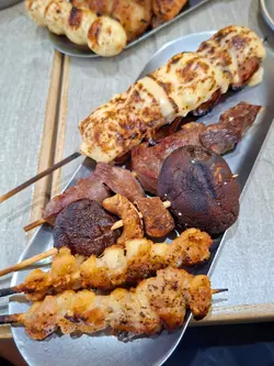 呢晚喺荃灣嚟咗呢間抵食嘅串燒店,有好多款$10嘅串燒,而其他串燒都好抵食,呢晚嚟到超多人幫襯,要等一陣位先入到座㗎🤩牛肉串♦️鹽燒牛舌呢個牛舌勁軟腍,油香充足👅♦️蒜蔥封門柳封門柳面頭加上香蒜同埋香蔥,底下嘅封門柳咬開仲有好多肉汁,而且肉味香濃🐮雞肉串♦️燒雞胸軟骨雞胸軟骨食落去,更有口感,真係會食到卜卜聲。♦️燒雞軟骨呢一個只係$10咋,我哋都encore咗多次🐥♦️月見免治雞肉軟骨棒免治雞肉軟骨棒入面都幾有口感,因為有啲雞軟骨粒粒喺入面,點埋日本蛋食真係一流。♦️燒芝士雞肉丸雞肉丸質地實淨,面頭仲有車打芝士🍡♦️明太子芝士雞肉串呢個係比較邪惡嘅選擇,上面有芝士同埋明太子醬,一啖食落去,都幾有層次感👍🏻♦️燒火雞子第一次喺串燒店見到有得食雞子,都幾有驚喜😮♦️燒雞肝呢個又係一個幾邪惡嘅選擇,雞肝食落口唔會好粉,而且味道唔係太腥。♦️燒雞腎雞腎咬落口幾爽口,配埋啤酒一流☺️豬肉串♦️鹽燒豬頸肉豬頸肉肉質爽彈,幾有口感。♦️焦糖骰仔豬手用上切成正正方方嘅豬手粒,燒得夠晒乾身,連層邪惡嘅豬皮都係好好味🐷 卷物串呢度都有好多選擇,個人幾鍾意雪梨牛肉卷,一咬開仲食到雪梨嘅爽口🍐♦️豚肉露荀卷♦️豚肉雞蛋卷♦️豬肉荔枝卷♦️雪梨牛肉卷海鮮串♦️燒白鱔白鱔都幾厚身,燒香咗之後外皮香脆,食落口仲冇泥味。♦️燒扇貝我哋嗌咗兩隻,芝士同埋蒜蓉口味各一🐚 個人就比較鍾意芝士口味多啲,仲有拉絲🧀♦️燒多春魚燒多春魚非常考師傅嘅功架,因為好容易就黐住咗個外皮或者係燶咗,呢度整得啱啱好,一咬開魚生就有好多脆卜卜嘅魚子🐟♦️焗蝦全部都係開邊嘅海蝦🦐 size唔算好大隻,但份量好多,面頭仲有滿滿嘅蒜蓉。丸類串餐廳仲提供唔少嘅丸類食物做串燒,加埋蜜糖嚟燒,真係好有BBQ嘅風味🍯♦️燒芝士腸♦️燒花枝丸其他食物♦️芝士流心蛋大啡菇呢個大啡菇一切開就有勁多蛋汁 入面仲有洋蔥做調味。♦️牛油焗雜菌我哋仲額外加咗蒜蓉,配埋牛油真係勁香🍄🟫♦️脆片炸雞炸粉唔會好厚,仲加咗啲脆脆一齊炸,令外層更加香脆😮 呢個價錢都幾抵食🍗甜品♦️焦糖菠蘿係勁Juicy嘅菠蘿,加埋面頭嘅脆脆焦糖幾正🍍♦️焦糖芝士蛋糕上層係勁香脆嘅焦糖面,底下嘅芝士蛋糕好綿密🍰♦️雲呢拿千層蛋糕呢個Crepe cake層次分明,食落口唔會太甜。飲品我地嗌咗兩枝麒麟啤酒,餐廳仲好貼心提供冰杯,咁就包保第一啖嘅啤酒係夠晒凍啦🍻呢間餐廳真係好有人氣,keep住都好多客,餐廳免加一,仲開到凌晨十二點,揸車過嚟食宵夜都好方便啊😎…Read More
