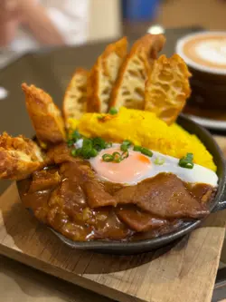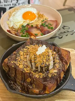 蜜糖叉燒太陽蛋葱油撈面