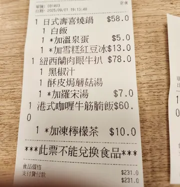 大家乐嘅一人寿喜烧锅返嚟啦,想食啲暖笠笠嘅嘢,一个托盘摆满所有嘢,份量对一个人来讲相当足够。🍲 是日菜式如下:一人寿喜烧锅典型嘅寿喜烧汤,味道标准。锅料都几丰富,有肥牛片、金菇、豆腐、白菜同芋丝,滚起之后热气腾腾。肥牛片轻轻一涮,送饭一流,合格有余。童年回忆嘅雪糕红豆冰云呢拿雪糕慢慢融化喺冰冻嘅红豆冰里面,甜度适中,红豆起沙。温泉蛋另外加配咗只温泉蛋。将蛋黄捞入白饭,再加一匙羹寿喜烧汤,瞬间提升咗碗饭嘅滑溜同香浓程度,自认系一个聪明嘅食法。大家乐嘅优点就系快、准、稳,唔使思考。…查看更多