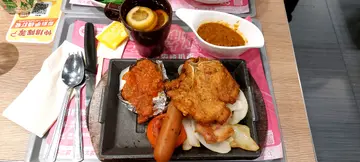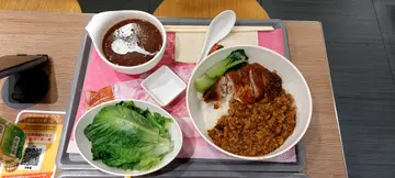 铁板杂扒餐 $58杂扒有猪扒、鸡扒、肠仔,肠仔内有鱿鱼粒,口感唔错,配上黑椒汁和洋葱,香味扑鼻,仲有肉酱薯蓉,份量丰富。台式卤肉烧鸭脾饭 $47另加菜和糖水$10整体食物中规中矩,味道不错。…查看更多