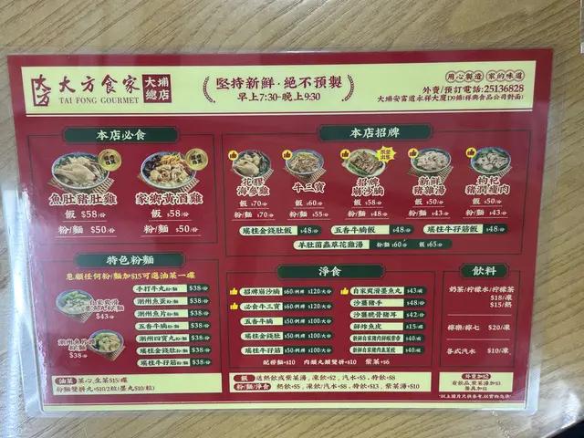 大方食家 (大埔) 网址: https://s.openrice.com/QrLS0KPGA00 地址: 香港大埔富善街6-14号永祥大厦地下D9号舖 电话: +852 25136828