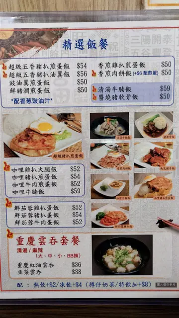 重庆麻辣小云吞 / 手拍青瓜 / 香煎肉饼饭 / 麻辣云耳 / 超级厚切猪扒饭