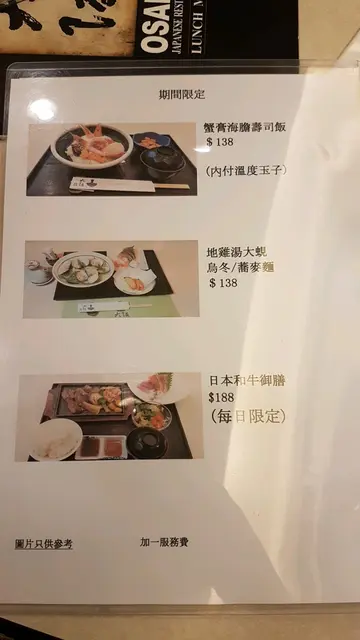 此店有35年历史,由日本大厨坐镇。选料一丝不苟,食物新鲜,用料每天晚市前由飞机从日本空运抵店,每次进口极少,故食物数量有限,欲一试请早到场。味道出众,卖相不花巧。