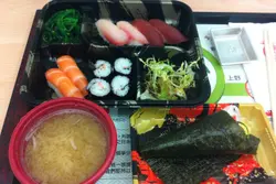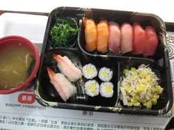 站起來食壽司的機會不太多,第一次是在SOGO地庫,這裡是第二次…吸引我購買這個壽司定食,主要是因為地點方便。我在兩個不同日子分別試食了下列兩款壽司定食,壽司是即叫即包的,師傅在人客面前以熟練的手勢卷飯團,然後舖上魚生片。B款定食包括三文魚、吞拿魚及鯛魚,細小的飯團上面放上一塊薄薄的魚生片,鯛魚的味道最差,師傅把不好吃的部位給我試,很粗的筋,咬下去硬崩崩的,沒有味道,吃之無味,棄之可惜,如果正價一定要退貨。三文魚還可以,吞拿魚的顏色就不太吸引。A款定食包含熟蝦、玉子和鰻魚,玉子的味道香甜可口,鰻魚的醬汁味道很濃,熟蝦壽司是唯一需要豉油調味的。沙律的醋汁酸味十足,前菜是一般的芝麻海帶,還有淡口的味噌湯,湯裡有少許豆腐和蔥粒。兩次都是三扒兩撥,十五分鐘內食完,離開時只有六七分飽。查看更多