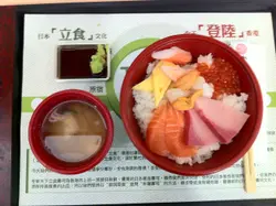 第一次從日本引入立食這個飲食文化來香港 甚是特別 至於食物質素如何就不知道了始終站起來進食的機會不多 一來香港面積少 交通方便 人們寧願買外賣回家/公司食都不願"面壁思過"二來香港人生活節奏急促 甚麼都要快 寧願坐車食爭取時間吸引我去一試的原因 主要是團購的關係三十九元包一份定食+手卷 很抵食!位置不難找 就在港鐵站入閘口前 團購定食有兩款 每款包括前菜 沙律 麵鼓湯 我選擇的那款有三文魚 吞拿魚及鯛魚 加上有四件蟹柳小卷魚生片不太大塊 只有薄薄的一層 幾新鮮 但是魚味不太夠 不夠甘香 可見食物來貨不夠好沙律配了一般的醋汁 足夠酸味 前菜是中華沙律味噌湯有少許豆腐 蔥粒 紫菜 不錯 略縑淡了些 加州手卷有魚籽 蟹柳 蛋 紫菜略縑不夠爽脆 其他的還可以吃完不太夠飽 當下午茶吃還可以始終來這間店選擇立食的人不多 失去了原本引入食店的原意立食台很矮 吃起來要彎腰才能進食 不太方便 而且地方淺窄 企位就在門口面 很容易被碰到 建議店方提高台的高度 以方便食客立食查看更多