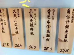 在日本也曾幫襯過立食店,香港立食店就是第一次幫襯啦!但心裡還是覺得吃東西就是要坐下來,不然就拿回去再吃吧!一進來覺得雖然位置不多,但地方乾淨,店員服務親切,第一印象感覺還是很好。:):)團購價二十八元便有味噌湯和角切什錦魚生飯,真抵食。 味噌湯有少許豆腐 蔥粒 紫菜 不錯 只是味道淡了一些。角切什錦魚生飯的材料有三文魚,吞拿魚,三文魚籽,鮑魚菇,小黃瓜,鳳尾菇等。食材都很新鮮,鮑魚菇爽口,小黃瓜清脆,三文魚籽,三文魚,吞拿魚都很鮮甜,只是吞拿魚有點筋,飯是用上珍珠米,入口軟綿微酸帶甜的醋飯,有飯香,飯粒也分明,整體口感豐富,不錯的魚生飯。:):)牆上都掛了Menu 除了壽司和生魚片,另外也有大福餅和其他點心出售。如果以正價來計,又沒有座位,不算太便宜,但如果想食壽司或魚生,又不想花太多錢,那這裡就比 citysuper 強多了,真懷念在台灣在菜市場都可以吃到又平又正的壽司。查看更多