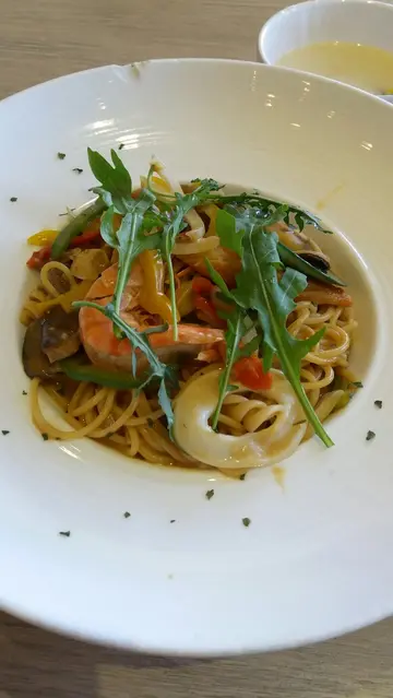 今日lunch食左个西班牙蕃茄海鲜软饭,唔错架上菜个阵热辣辣,服务员仲贴心讲左句"小心热呀"~ 个饭好浓郁,酸酸地嘅蕃茄汁,仲有啖啖芝士味不过唔知系咪太浓,食返海鲜个阵就觉得唔够味,有d淡!整体不错,但一个人食会太饱,食唔晒,有d滞,可能因为有芝士!可以两个女仔share:) 查看更多