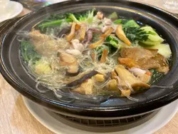 今晚朋友选址这里聚餐, 由于有啲食物要预订, 所以她们安排晒一并订妥今次大部份食物.齐人后, 侍应细心问了可以起菜就续一送上.第1道: 爵士汤 – 好足料的炖汤, 内有肉,鸡脚,螺头,玉竹. 饮落肚即时觉得身体暖润咗.第2道: 圣子皇 – 原只圣子好有新鲜, 上面放了粉丝及蒜蓉, 再洒上葱粒, 加埋豉油, 鲜味更出. 圣子火喉控制得好好, 仲好鲜嫩, 没有过火(会un).第3道: 炸蚝 – 超赞!! 蚝够大只, 炸得恰到好处, 蚝的鲜味同水份都保留住, 炸粉恰如其分(不是平时经常尝到的粉多过蚝).第4道: 龙趸翅 – 唔知时以为食翅, 打算不吃, 原来此翅不同彼翅. 味道偏浓, 不好噒骨, 所以唔识欣赏.第5道: 鲜菠萝咕噜肉 – 呢道菜好耐无食, 因为好多次(喺不同食肆)食炸粉多过食肉, 所以唔会叫. 终于食到好的咕噜肉, 无骨, 啖啖肉, 兼肉多过粉, 真材实料! 不过, 鲜菠萝同颜色椒唔够入味.第6道: 羊腩煲 – 羊腩有皮,有膏又好”林”. 怕”苏”的朋友都有食, 但喜欢羊肉”苏”味的我觉得唔够. 第7道: 啫啫芥兰煲 – 煲真系好热, 侍应送来时一边搅动芥兰, 一边提我哋衬热食, 不过由于太多食物食唔切, 到最后发现芥兰有啲啲焦了.第8道: 糯米饭 – 呢个系后加的. 因为已食了好多, 呢个饭只食了2啖. 睇落似好油, 食落可以接受.食材好又足料, 厨师有功架!!…查看更多