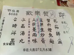 中秋套餐牌. 相對圖1,是明顯地多了一道炒蝦仁(藍圈).