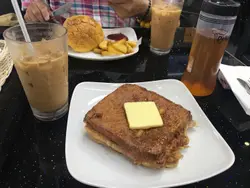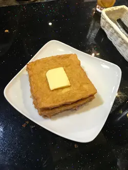 昨日臨訓前突然好想食菠蘿油,又好想食西多士,咁岩今日同屋企人出去元朗,就去左雞地搵野食。入去前見到有兩位女士係門口好似執梗野,但我爸無留意到就咁行入去,我見到其中一位女士有問過廚師(事後先知係老闆)既意見,老闆表示做埋我地既生意先,原來佢地已經準備收鋪啦。望住餐單見到好多好特別既菠蘿包,唔單止有我想食既菠蘿油,佢仲有好多自創既菠蘿堡,咁爸媽各自叫左個菠蘿堡,我就叫左西多士。豬頸肉菠蘿堡味道唔錯,沙律幾好食,菠蘿堡個皮幾脆口感唔錯,但由於個包太厚既關係,媽媽選擇左分開食邪惡西多士個多士燶左少少,老闆事後有表示唔好意思,但其實我不太介意哈哈塊牛油都好厚,真心勁邪惡🤤多士入面夾左火腿芝士,脆脆既多士加上牛油同不算太甜既糖漿,我個人好喜歡🤤不過杯凍鴛鴦我就覺得麻麻地,味道有少少怪,果然要茶餐廳先好飲🤔查看更多