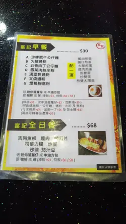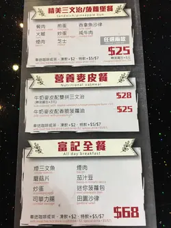 之前見過雜誌介紹,於是抱著少少期望去試,結果是有點失望的。富記其實與一般茶餐廳冇大分別,食物也是大路的茶餐廳款式。特別的賣點就是菠蘿堡。顧名思義,就是菠蘿包+一片菠蘿再配撘其他肉類如牛扒、雞扒、蝦餅等等。我最後點了吉列魚柳菠蘿堡,講真,魚柳是炸得香口的,配上那片菠蘿也不錯, 但問題就在包著食材的菠蘿包,明顯是翻焗都算,但仲要係焗到硬左,有啲起筋feel...失望....咁樣,我唔會再試其他的了。查看更多