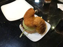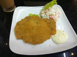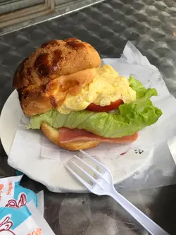 知佢出名菠羅堡, 特登去試架。煙三文魚菠羅堡: 係幾有創意, 個包都好大個, 除左菠羅包, 入面仲有真GE 菠羅!個菠羅包烘過, 好脆, 但切開都唔會散哂, 放心。煙三文魚都唔少架。不過可惜GE係, 太甜了.... 本身菠羅包皮已經甜, 加埋罐頭菠羅更甜, 個包SUPPOSE 係又咸又甜GA MA, 而家係太甜了.... , 而佢地GE 煙三文魚唔太咸, 俾D 甜味蓋過了.... 中和唔到D 甜味。鐵板燒雞:佢地用細雞仔, 都有半隻雞架!!! 燒得幾香, 但燒得熟左少少, 所以D 肉有D 老, 但整體都好食! 另配薯菜, 加錢仲有湯同飲品, 晚餐來計, 價錢合理。查看更多