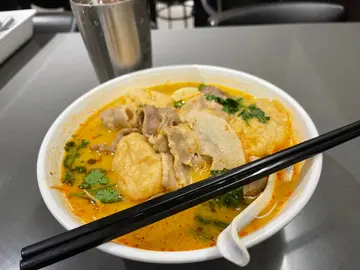 去开附近,谂住食个快中午饭,所以求其食间就近。喇沙汤面d味尚算正常,但d𩠌⋯⋯真系唔系几好食。我初头叫丸,不过可能佢听错,变咗肥牛定豚肉我都分唔清楚。不过事但,我都唔坚持要丸,所以呢碗系肥牛鱼腐响玲喇沙。面底系油面+粉丝。面底同汤正常味,面的软硬度适中,汤d味ok,鱼腐系稔d,里面比较松唔系实嘅,不过味算还可。但个响玲稔到一pat,无计,浸汤咁耐肯定系咁,不过加pat稔晒的响玲碗野变得好怪。然后d肉超级肥,一块60%是肥肉食唔到,肉果部份又无乜味道,有啲硬,所以唔系几分到是牛是豚。可取之处系超级快速上到碗面,侍应算几勤快。Overall 来讲又唔系话完全无可取之处,只系d肉真系又肥又硬兼无乜味,咁就扣了好多分了。Total 59蚊,有杯冻柠茶,适中啦,唔平唔贵。不过应该唔会再去。…查看更多