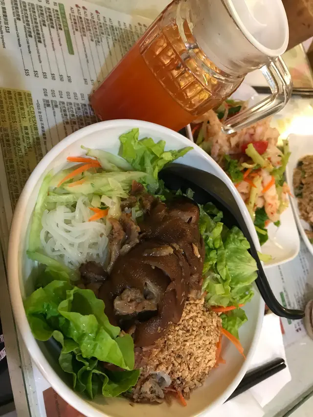 食過呢間小泰豆好多次,原因係性價比高,仲好好食,咁多樣野之中我最鍾意撈檬,主要係佢個汁可以自己落之餘,酸度適中,配菜足料,有蘿蔔絲,生菜,花生,配搭起來好正。講番個豬手,夠肥瘦適中,有肉汁,好滑,冇雪味,真之推薦。下午茶餐叫左個泰式鳳爪,粉量好多,不錯。味道方面都係以酸辣為主,但酸多過辣,辣得温柔,岩曬我口味。至於飲品,幾欣賞佢個熱菜蜜,跟餐唔洗加錢。甜甜地幾好飲,感覺好潤喉,不錯!喜歡泰國野既朋友不妨一試查看更多