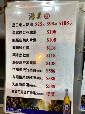 老板舍得在食材下本钱, 选取食材亦严谨, 烹煮方面愿意落功夫, 单是一个乌鸡椰子汤已令人赞叹, 超级足料以慢炖的方法, 汤入口甘甜鲜香, 辣子炒鸡丁食得出是用鲜鸡, 且非常入味, 送酒一流, 还有好少在食店吃到的赤米, 这种海虾的鲜甜是非其他虾可比, 酥炸生蚝是选用新鲜本土蚝, 那个酥皮做得酥脆不油腻, 入口即溶, 当晚叫了很多𩠌, 抱歉没有一一影相, 埋单价钱是良心价, 吃得满足, 付钞时更是笑住俾, 伙记态度好好, 小店的人情味, 这样的食肆食完你是想通知好友有这样的好店。…查看更多
