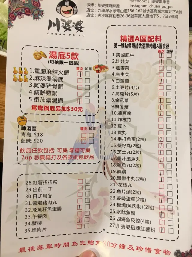 川婆婆 (长沙湾) 网址: https://s.openrice.com/QrLS0hW0800 地址: 香港长沙湾青山道156-162號永基商業大厦地下A舖 电话: +852 21100281