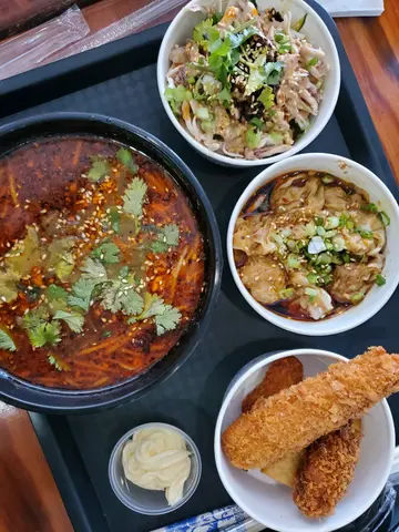 黎之前睇相好似唔错先黎一试。点知中午1点倒黎到。环境干净清洁,枱櫈濶落,都算坐得舒服。一入黎冷气够凉,但眼见繁忙时间无人黎食都觉得好奇怪,结果真系好好好一般,唔会想黎第二次。😖😖😖👎🏻呢碗金钱肚麻辣汤薯粉睇落好似好吸引,但闻落食落无唛香味,净系啖啖都好多油。最后都多油又无味到食唔落去,满口油淋淋。😖😖😖呢碗担担面又系无唛香味,无花生味,得色水,净系咸咸地,十分普通。😩呢个价钱附近,真系有好多选择。查看更多