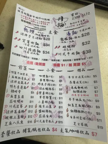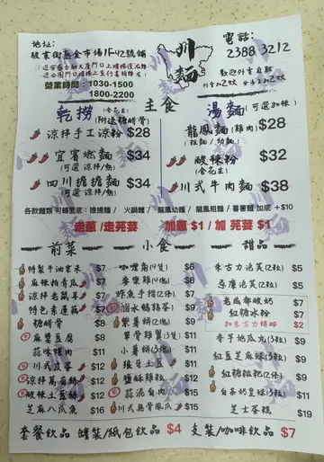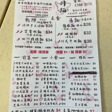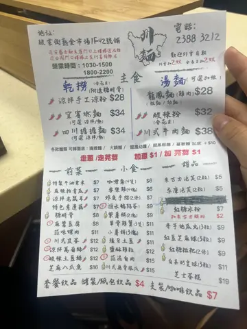 观塘熟食市场一向非常抵食,位于市场2楼的川面主打四川面食及小食。点一碗面食再加上几款小食,价格亦不超过$70,非常划算!!🤤- 酸辣粉 HK$32 🍜🌶经典味道!!薯粉非常弹牙,软硬适中,汤底味道也不单调,微酸,配上黄金豆、花生、葱及芫茜,味道经典。- 川式皮蛋 HK$12 🥚🌶超靓溏心皮蛋!!皮蛋微辣,超正中央蛋黄流心,外皮雪花花纹非常靓,性价比超高!!- 酸辣土豆丝 HK$12 🥔🌶爽口小食!!土豆丝爽脆有口感,微微薯仔香甜,酸辣汁微辣又惹味。- 卤水鹌鹑蛋 HK$9 🥚抵食之选!!卤水味道偏甜,非常开胃。鹌鹑蛋腌得入味,蛋白部分微微弹牙口感,跟铁蛋相似,好好食!!- 四川担担面 HK$34 🍜🌶- 龙凤面 HK$28 🍗🍜- 麻酱豆腐 HK$8 - 小薯饼 HK$11 🥔- 特制牛油粟米 HK$7 🌽- 紫薯饼 HK$9 🍠- 蒜泥白肉 HK$15 🧄🐷…查看更多