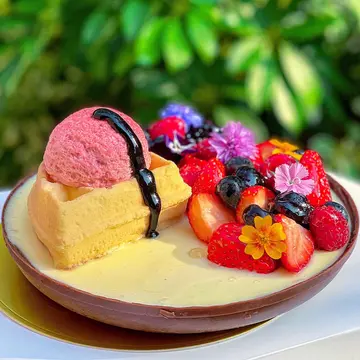 跟大家玩个游戏🤫,你觉得它是蛋糕,还是窝夫呢😳?!帝京酒店的鬼马蛋糕一向相当有名,卖相有趣,造型细致,像真度高,是打卡必备的呀📸~这个「 鬼马朱古力窝夫蛋糕🎂 $480/磅 」,与一般在咖啡店吃的窝夫一模一样🤣,差点被它骗了。蛋糕由朱古力海绵蛋糕、红桑子慕丝、红桑子果冻、红桑子酱和白朱古力慕丝组成,甜中带点酸,加上大量水果,吃多一块也不怕腻哦😏。查看更多
