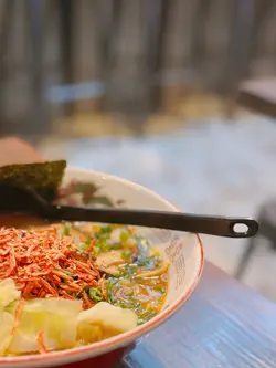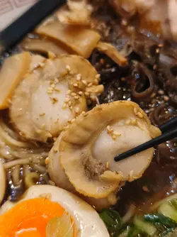 喺灣仔做完嘢,知道附近有間拉麵店,一於入去返碗先。拉麵店環境舒適,坐得舒服。有拉麵有沾麵,一於同同事各叫一碗。🍜 櫻花蝦味噌拉麵一上枱就俾成座「櫻花蝦山」震撼到!湯底用赤味噌混蝦頭熬煮,橙紅色湯汁稠到掛匙!麵條咬落彈牙有麥香,最正係雙豚肉叉燒,厚切腩肉慢煮到入口即化,薄切肩胛肉炙燒到焦邊脆口,夾埋流心蛋黃同脆口木耳絲,非常滋味。🫕 魚介豚骨沾麵經常出現的話題,拉麵vs沾麵,倒不如各點一款比較一下。沾麵湯底稠到可以掛企匙羹,魚介嘅煙燻香撞豚骨嘅膠質。而沾麵底屬粗麵,冰鎮過上枱,咬落非常Q彈,夾一束浸落熱辣辣湯汁3秒——掛汁力爆燈!另外,配料嘅慢煮叉燒腍到離譜,糖心蛋流汁撈湯更邪惡。🥢 小食- 冷豆腐:凍豆腐淋鰹魚汁,面頭灑上木魚花,夾埋青瓜絲同蔥花,非常清新。- 芝士年糕:流心芝士湧出嚟!外糯內流心嘅雙重口感,記住趁熱食,凍咗會變芝士橡膠波㗎!後感:食幸屋,真幸福。…查看更多