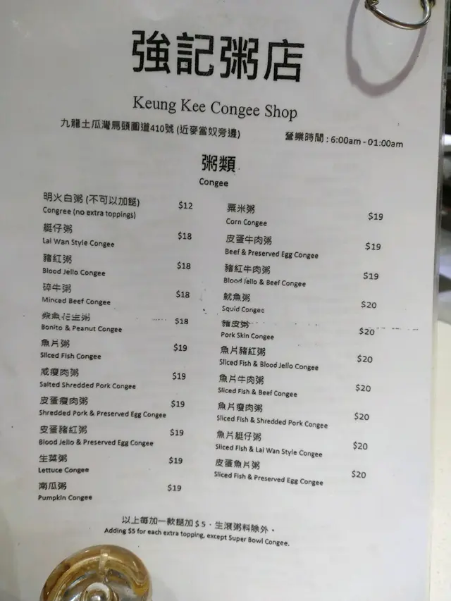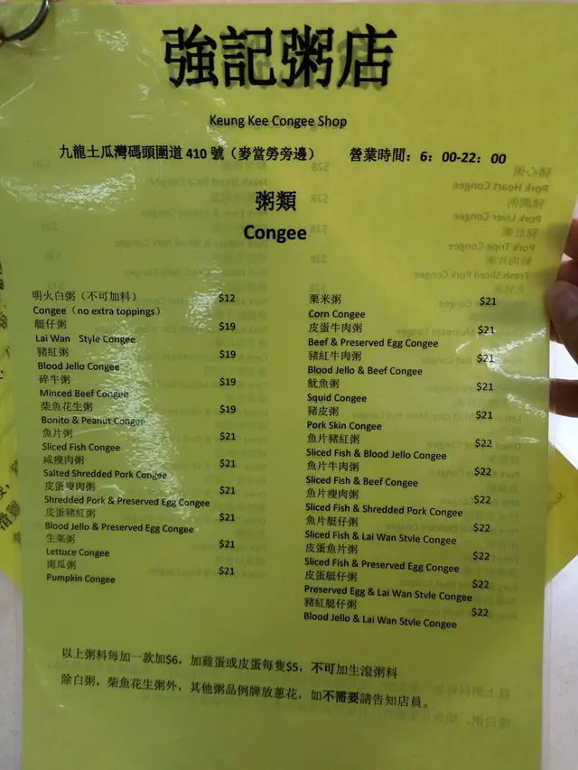 強記粥店 (土瓜湾) 网址: https://s.openrice.com/QrLS00IC900 地址: 香港土瓜灣馬頭圍道410號地舖 电话: +852 55408272