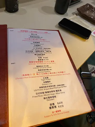 同朋友闲闲哋,嗌咗间铁板烧放题搏一搏。一入去,就闻到阵阵炭香,有种好有feel嘅感觉。哥个铁板烧真系有料到爆!蟹籽沙律既口感弹牙,每啖都爽口得嚟,啲三文鱼同帆立贝,新鲜得滑咁过喉,平平地一个开始都满足到我。这里嘅活鲍鱼同大虎虾,真系够晒霸气,口感够晒Q弹,海鲜sweet到令人怀念!跟住落战嘅系法国鹅肝,滑溜溜嘅质感,入口即溶,太正喇!至于安格斯肉眼,烧得刚刚好,外层微微焦香,肉汁满溢,嗜肉一族必选。佢地嘅日式炒饭同炒野菜都做得够味,炒饭粒粒分明,野菜仲保持到清脆。最后嘅雪糕,简直系一个perfect ending!整体来讲,这个铁板烧体验真系物超所值,离开时已经计划紧下次几时再嚟!🍜🍢🍧…查看更多