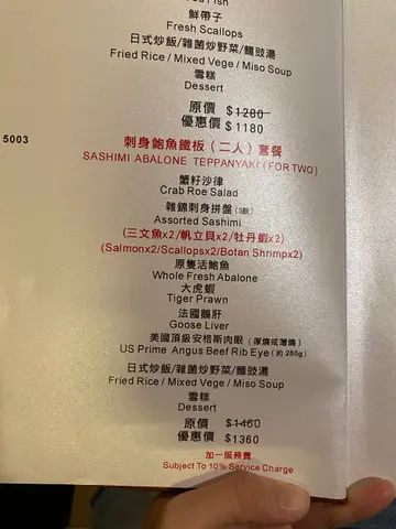 突然想食铁板烧,之前嚟过食ok,所以再访。选这的原因是价钱合理,食材不错,份量很足料,订位不难。今次点了个刺身鲍鱼铁板(二人)套餐,包括:蟹籽沙律杂锦刺身拼盘(3款)(三文鱼x2/帆 立贝x2/牡丹虾×2)原只活鲍鱼大虎虾法国鹅肝美国顶级安格斯肉眼(薄烧)日式炒饭/杂菌炒野菜/面豉汤雪糕鲍鱼及虎虾也大大只,再加埋大大件的鹅肝,很满足!薄烧安格斯肉眼也不错。晚饭每位约七百元,总括而言以这些食材及质素来说,抵食之选。…查看更多