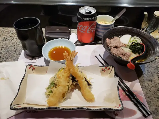 Tempura with beef udon.