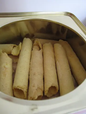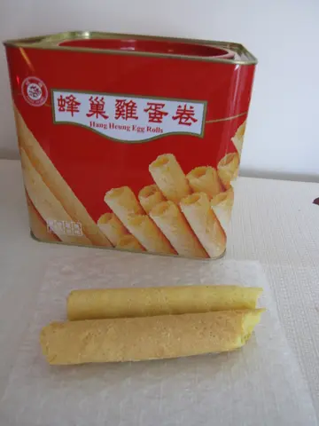好耐之前朋友介绍过恒香的蛋卷系好食,不过价钱比其他贵~但好耐之前食过,真系好食d!见到恒香的蛋卷做紧8折....就即刻买一罐黎食啦~蛋卷有分细罐($55)同大罐($75)....我买了大罐,有35支...而且不是独立包装...唯一不方面之处~但质素好,令我贵都要买既原因~蛋卷比较厚身,咬落口唔会散晒,比起其他的多层数....可能系蜂皇做,唔系好甜~蛋卷size就唔系特别长!!