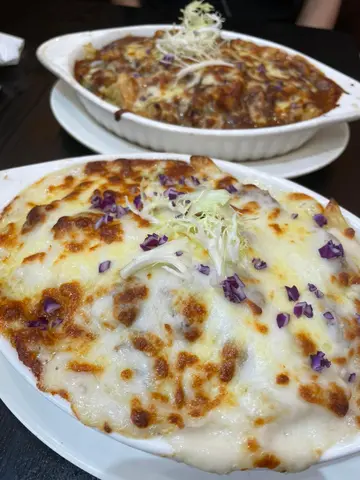 呢间餐厅主打平价焗饭/焗意粉。餐牌上面有九成餐点都系焗嘅。今日我哋叫左两款唔同嘅下午茶餐试吓。🍄🟫芝士焗黑椒汁蚬肉蘑菇螺丝粉明显见到粒粒蚬肉喺入面,料子都几多。黑椒味都算香,整体嚟讲几惹味。🐟芝士焗白汁吞拿鱼尖通粉对比起前者呢款就逊色少少。吞拿鱼唔算多,而且个汁都争咗少少味。两款个面都焗得好靓,但系其实都系同茶餐厅差不多😂并没有特别出色。…查看更多