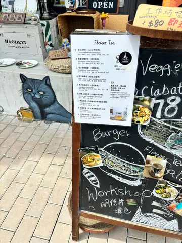 放假黎到马湾1868打卡, 打完卡食个早饭, 见到呢间餐厅好有外国风情feel, 又有可爱猫店主坐阵, 就入去休息和享用晚餐, 入到去感觉充满巴黎的浪漫氛围, 装潢布置富有异国特色, 好chill~ 店主介绍仲可以有名信片油画和画碟创作, 自己试下做吓艺术家, 小朋友和大人都岩, 哈哈! 由于食物即叫即整, 所以都需时, 要耐心等候喔~*秘制鸡胸肉配烟三文鱼沙律 $138叫左呢款健康餐, 慢煮鸡胸肉都系自家制, 配以小小黑椒粉作调味, 食落有咬口, 烟三文鱼美味, 配搭沙律酱鸡丝和鹰嘴豆酱, 好丰富又有益, 沙律菜新鲜*蜜糖香草咸猪手切片配沙律 $238猪手都系自家制, 外皮烧到金香比较烟韧, 肉质结实, 味道浓郁, 配以酸瓜, 橄榄, 鹰嘴豆蓉和杂菜作为主食, 份量都几多*蜂巢蜜糖水果脆脆配雪糕 店主介绍呢度既signature dessert, 蜂巢就咁食小小硬敢地但又几脆, 几特别, 混合埋士多啤利、香蕉、nuts和雪糕, 口感相当丰富, 好味*粉蓝色双子星由蓝柑橘、香蕉、乳酪制作而成的饮料, 打卡靓, 饮落带点清新, 小小柑橘和香蕉香味*粉红色的一生以士多啤梨为主调, 加上香蕉和乳酪, 好cremy, 都系靓靓, 好适合打卡整体用餐愉快, 会再黎光顾~…查看更多