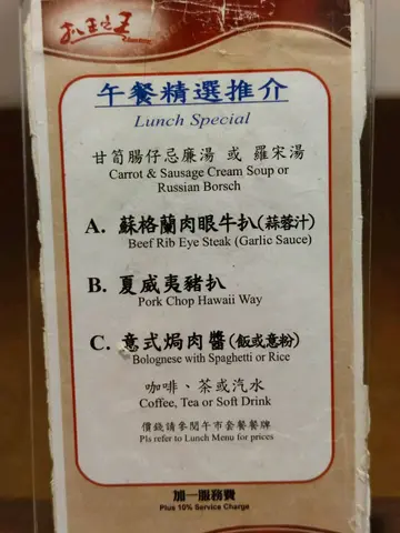 细细个中学时代..尚算中价位既扒王之王..执执下..已经得返沙田最后呢一间..食既只系回忆..味道只系一般茶餐厅既水准了..今日就同朋友黎呢度食个lunch..回忆下想当年既感觉