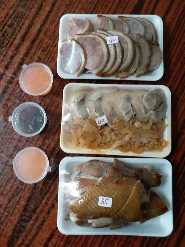 左: 德國豬手,右上: 滷水鴨, 右下:辣海蜇燻蹄