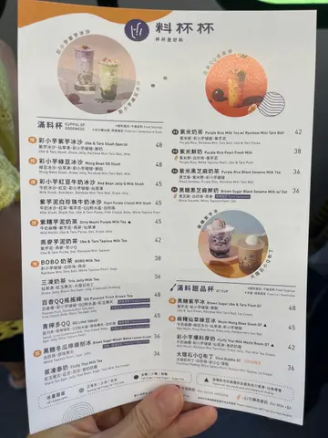 早排系沙田行街,心思思想揾间茶饮店买杯嘢饮,但好似都系差唔多,望下openrice就发现到呢间叫「料杯杯」嘅茶饮店!好搞笑,睇完先知原来佢系我最爱吃甜品牌子「鲜芋仙」嘅姊妹茶饮店嚟㗎,谂都唔谂就即刻行去买啦!去到见到间店嘅门面一啲都唔大,仲以为有得堂食(因为太钟意食鲜芋仙)。咁拣下有咩饮先!我哋就拣咗3杯嘢饮!🩷黑糖紫芋冰呢杯系我拣嘅,很爱芋头嘅我,要拣返杯紫芋先啱口甜,入口完完全全唔系冰,系非常足料,满口都系芋头❤️❤️❤️上面仲配咗一球雪糕同有小芋圆粒粒,真系饮完等于食咗个饭咁,劲满足!❤️冬瓜柠檬朋友话之前啱啱食饱,要消下济,佢杯冬瓜茶好香味,配埋柠檬酸酸甜甜好正!🧡仙蜜奶茶呢杯系另一位朋友,佢就表示呢杯奶茶好好饮,味道唔会太奶味,亦都唔会过份偏甜!整体来讲,呢间系一间好意外嘅茶饮店,我好欣赏佢嘅芋头同小芋圆,有机会会再去买!环境:⭐️⭐️⭐️⭐️服务:⭐️⭐️⭐️⭐️口味:⭐️⭐️⭐️⭐️⭐️价格:⭐️⭐️⭐️⭐️