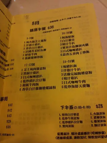 特餐、常餐、及午餐的menu下午茶餐menu整个常总共是$36, 真是抵食冻柠檬茶鲍鱼片猪颈肉米线奶油猪仔包真是好正