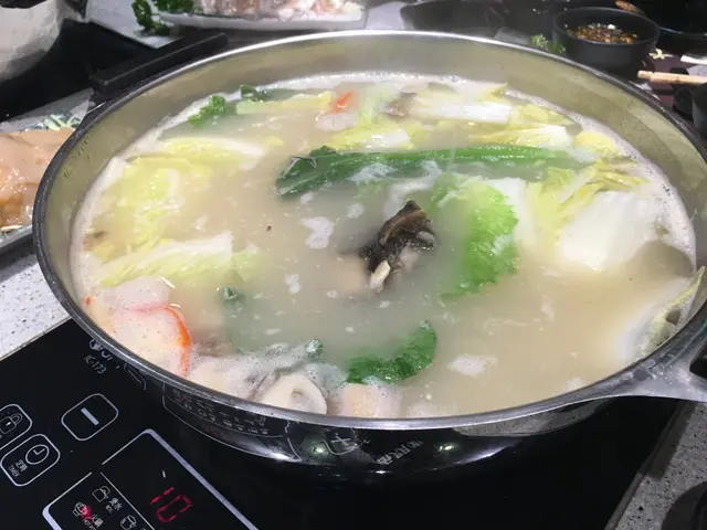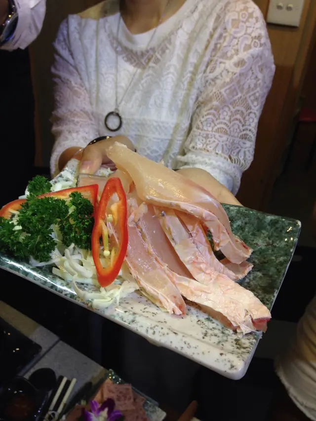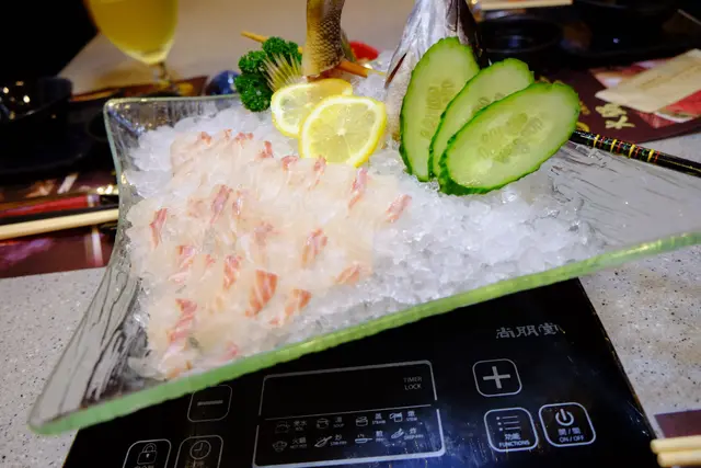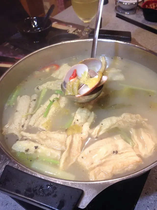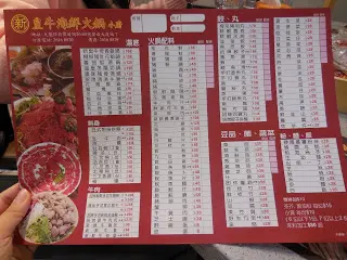 Suggested was a steaming warm hotpot place where you can eat fresh, in a local way, with reasonable prices.It took us some time to find out the store among these small streets, (in the middle point among Jordan, Yau Ma Tei and Austin station) ; but luckily there are many direction single on our way there.We have devoured freshly caught sashimi, marbled beef, handmade cuttlefish balls and a good selection of seasonal seafood that we can cook in its signature pot of bubbling broth piled high with clams, pig stomach and pepper胡椒豬肚花蛤湯. The pig stomach was stuffed with rice which soaked up all the pork and pepper essence. We would recommend drinking the soup before hotpot starts!If you are searching for a lighter broth, soup base made from stewed beef is good enough.Mild flavour of beef and coriender. Hand cut beef and marbled beef was nice and fresh. The portortion of fat are perfect; hand cut beef would be a bit leaner than the marbled one though.Hand made fish ball and cuttle fish ball was a surprise, with tangy wasabi inside that lift up freshness of cuttle fish to another level that you can get a taste of sweetness from this tiny cuttle fish ball.Feel free to ask for a recommendation of seafood from the staff as they have seasonal seafood and sashimi freshly kept at the huge fish tank right outside their restaurant; but be ware that price is also seasonal- you’d better confirm the price before any ordering.Worth noted is its freshly deep fried tofu skin roll 響玲( middle right) which you can eat that with salad dressing or get smothered into the soup based for only 5 sec which has soaked up all the goodness from the pot.Sashimi was another freat option at this seafood specialised restuarant; we opted for sea bass which has clear white meat(a sign of freshness!) and classic salmn and prawns too!Do not expect modern and fancy decor; it’s a typical local eatery with fluorescent light, big Chinese round tables and floor with white tile. 新皇牛海鮮火鍋 has put all his effort to please the patron’s stomach instead. If you have a bunch of people and need a bit more privacy, book a separated rooms there.Remember to book in advance, to secure a private room, or a perfect spot where u can watch TV! Keep warm guys!…查看更多