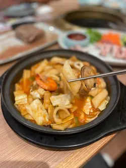 a truly reliable michelin-guided spot—this is one of my go-tos for kbbq in hk! u simply cannot leave without trying 🐮marinated galbi. the beef is so tender and the flavour is deeply savoury-sweet, caramelising perfectly on the grill. I highly, highly recommend it. to mix things up, we also enjoyed the 🍲beef & homemade noodles hotpot. it was deeply comforting with a rich broth and wonderfully chewy noodles. the 🐙boiled cuttlefish was another great choice, served fresh with a sweet-spicy dip that was addictiveone word of advice: we made the mistake of ordering the 🦀seafood tteokbokki ‘less spicy’. it ended up quite bland and lost all its character. definitely stick with the original spice level for this one!呢间绝对系我喺香港食韩烧嘅其中之一饭堂!蝉联米芝莲指南多年,次次嚟都咁高水准。必食首选🐮特级大牛肋骨!腌得好入味,甜甜哋又香口,烧完微微焦香。另外叫咗个🍲鲜牛肉锅自制面,汤底好浓,面条咬落烟韧,不过牛肉少碎。小食试咗🐙烫墨鱼,配埋个甜辣酱同蔬菜一齐食,好开胃不过有样要提提大家:我哋叫咗🦀海鲜炒年糕少辣,点知变到好淡,所以大家嚟到都系叫返正常辣…查看更多