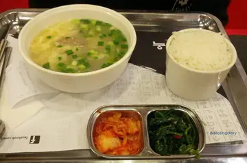 )而男友就点了牛肋骨汤我们还加了一客泡菜煎饼这里的点餐方式是先到收银处付款然后店员会给你一个小仪器食物准备好后那个小仪器会震动 提示顾客领取食物(对于我来说 非常新奇啊