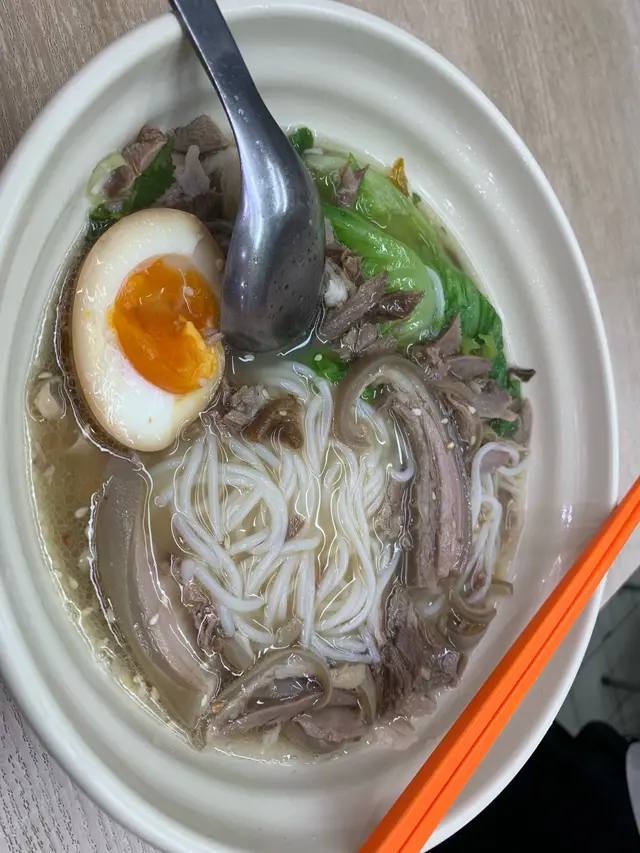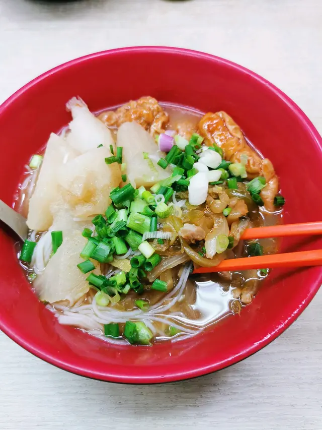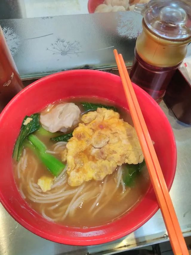食左好多次嘅明記,今日又來食,揀咗蘿蔔、豬皮、魚蛋同牛腩四餸,配油麵底。湯頭一飲驚艷——濃郁牛骨湯底帶淡淡柱香,唔會死鹹,反而有種深邃嘅甜味,明顯係熬足功夫!蘿蔔清甜無渣,豬皮吸盡湯汁爽彈十足,牛腩軟淋入味,魚蛋更是彈牙帶魚香。麵身掛湯力強,每啖都係滋味!價錢平民,但用料實在,絕對物有所值。廿幾度天氣下食到滿頭大汗,卻滿足到舔碗底!若果要挑骨頭,只能說份量略少,食量大可能要多加個餸。開左咁多年果然keep住水準,將車仔麵嘅街頭智慧發揮得淋漓盡致!值得專程一試。…查看更多