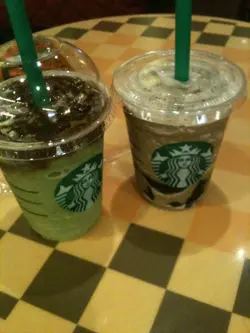 今次嚟到Starbucks搵食! 又到咗週末外出搵食嘅好日子~不過出門遲咗~又未到晚餐時間~只好去Starbucks hea一陣~雙重朱古力抹茶星冰樂 ($48)之前試咗另一杯限定嘅朱古力紅茶伯爵啫喱星冰樂~襯佢落架前試埋呢杯先~佢嘅雙重朱古力係杯邊嘅朱古力同埋同抹茶沙冰一齊打碎嘅朱古力碎~平時嘅抹茶星冰樂只有抹茶牛奶+沙冰~而呢杯因為加入咗朱古力碎~口感上多了一重層次~再加上間中會吸到啲朱古力醬~真係有多重口感~整體上係比較甜~建議大家可以叫少忌廉減少一點膩~同原圖都算相似~可見此店員工有用心調配飲料~2款期間限定飲品來說個人比較偏愛呢杯雙重朱古力抹茶星冰樂~一來抹茶base冇朱古力base咁甜~而且另一款嘅伯爵茶啫喱味道太不特出了……查看更多