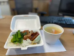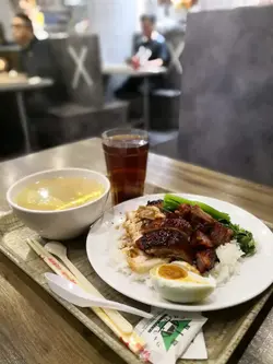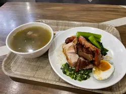 星期六落咗中環睇牙,睇完牙就順便喺附近食埋嘢先,行到去豐澤後面條橫街,記得平日食晏會好爆,好多打工仔會嚟呢度揾飯食,但係今日係禮拜六所以大部分餐廳都見有位,見有間燒味鋪有位就入咗去坐底。四寶飯聽得多,但係五寶我就未聽過啦,見餐牌上面有個「燒腩五寶飯」,就不如試下啦。因為冇乜人我好快有得食,五寶分別係燒肉、叉燒、燒鴨、一隻雞翼同埋一隻咸蛋。雞翼比較少見,甚至唔會喺燒味店岀現,不過好入味,叉燒同燒肉都係半肥瘦,白飯再加埋啲燒味豉油真係冇得頂。喺中環可以食到咁扺嘅燒味真係唔錯,可以再嚟。…查看更多