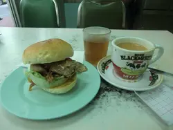 本来是打算去庆祝一下我们的两周年的,可是碰啱是日是十五。本来都不理,改去食中午饭,但佛堂的一个来电,要我们帮忙买花.....就这样,整个计划就被打乱了。中午去了花墟,再入到屯门,太太因为要帮手而要留在佛堂,而我就独自带著小宝宝,去买面包同食下午茶。一个人,带著小的,本来都想买个包返去佛堂食算,但一心想咬点肉的我,因为荤腥类食品,不能进入佛道之地,于是,就一个人逗著顽皮的B,食下午茶。因为一手要捉实阿B,所以只有一只手可以用来食野。要舞刀弄叉的茶餐,一定要放弃。所以,一入来,我就选中了他们的包餐,不吃猪扒,特别的要一个鸡扒包,看看有什么分别。是洋葱鸡扒,因为是鸡骴肉的关系,肉质比较厚身,一见包包,有一个错觉,就是oversize。不过,只是鸡骴扒一向都比较厚身的错觉。同猪扒包一样,此包不是热辣辣地食的包,鸡肉味道其实几淡下,味道不够浓,撑不起整个包。最可惜的是我感觉到洋葱味是胜过鸡扒味。好的是,鸡扒嫩滑啰。奶茶,味道够浓,奶味又十足,弥补了鸡扒包的不足。此店,虽然打正景峰花园做招牌,食过这一个下午茶之后,我觉得这个招牌,冇乜goodwill.....…查看更多