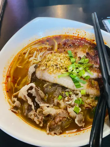 第二次嚟呢度食嘢 上次食咗个芒果糯米饭🍚今次食咗个冬阴功汤底嘅 粉丝猪颈肉肥牛 嘅一个面 男朋友照旧都系食咗个咖喱饭🍛上次嚟冇写到食评 张枱放咗三款式调味料花生🥜碎、辣椒🌶️碎、糖 ,餐具同埋调味料都有放好,冇暴露在外,有种好卫生嘅感觉,而且我留意到佢哋间铺有个空气清新机,有种不能说的安全感