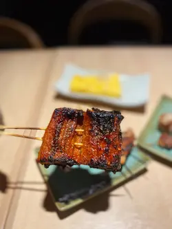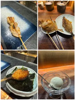 太子一帶不乏串燒店,月華開業數個月,已經吸引唔少人幫襯。師傅同埋侍應都相當有禮貌👍🏼串燒係即叫即燒新鮮熱辣辣🔥✿ 廚師發辦 $420/位 x 2✨前菜味噌茄子🍆加青葵,兩種食材都好入味。✨麻蒜油甘刺身油甘魚刺身上面有麻蒜油,組合非常新穎😳本身油甘魚都新鮮,加埋蒜油令口感更昇華。✨燒炸豆腐燒豆腐向來喺串燒店都好出色,豆味香濃。✨冬菇冬菇用黎燒其實幾出色,做到juicy效果🍄✨豚肉溏心蛋/ 免治雞肉棒溏心蛋表面有豚肉🐷第一次食到呢個組合!原來系用溏心蛋擠蛋黃出黎,再用免治雞肉棒沾上。✨北海道紫蘇豬肉卷紫蘇葉香味濃郁,同豬肉混合埋一齊有解膩作用。✨雞腎肉質爽脆有嚼勁。✨雞頸外脆內軟,口感有嚼勁。✨雞腿肉 雞腿肉啖啖肉,向來系大家心目中燒鳥之選。✨自家製魚餅魚餅有淡淡海鮮味,並帶有微甜口感,有彈性🐟✨日本鰻魚 鰻魚口感軟稔冇骨,充滿日式風味。✨燒飯糰燒飯糰🍙燒得好香,脆脆哋,口感十足。…查看更多